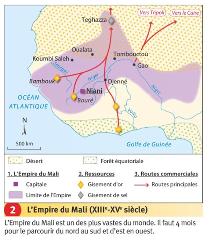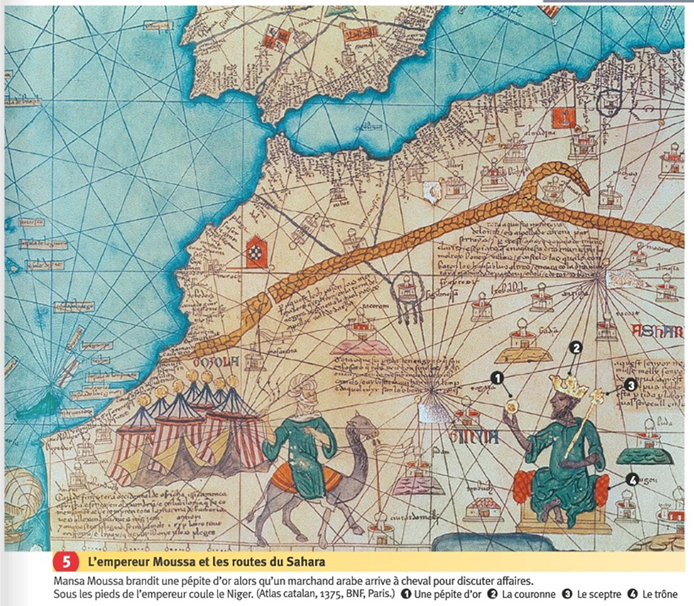 Par ailleurs, 1339 l’empire du Mali apparaît dans l’Atlas catalan de Charles V, qui précise que son roi « est le plus noble et le plus riche de toute cette région pour l’abondance de l’or que l’on trouve sur sa terre ».