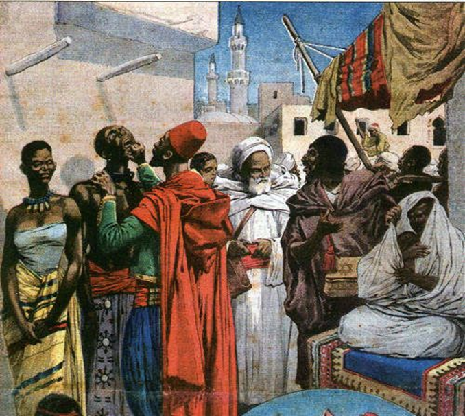 Entre 640 et 650, avec la conquête Arabo-Islamique de l’Afrique du nord, s’instaura le commerce transsaharien qui consistait à l’échange de marchandises entre le Nord et le Sud du Sahara. Le Soudan avait à offrir de l’or, du cuivre, de l’ivoire, des produits agricoles etcétéra, tandis que les marchands arabo-musulmans échangeaient des produits manufacturés et des chevaux. Les natifs de la région étaient capturés par les marchands arabo-musulmans afin d’être réduits en esclavage.