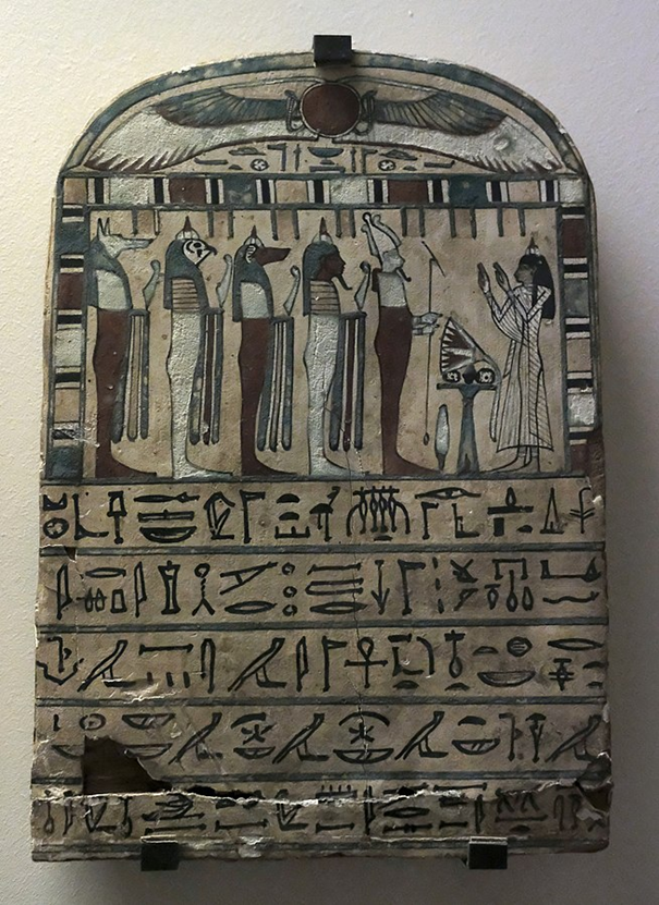 Dame Meresimen, fille d’Ounnéfer, en prière devant Osiris et les quatre fils d’Horus – 25e dynastie, vers 715-656 av. J.-C