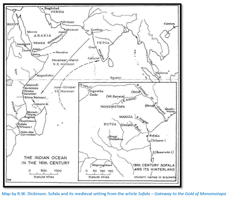 L’empire Monomotapa reste toutefois puissant : le contrôle très rigoureux de la production aurifère par le Mwene Mutapa ne permet pas non plus aux Portugais de se passer de lui. Lorsque les Portugais s’installent à Sofala, leur objectif est de contrôler le commerce de l’or entre le plateau et l’océan Indien, mais les Arabes qui se sont installés au nord des embouchures du Zambèze, à Angoche (ville côtière du nord-est mozambicain), continuent à jouer un rôle prépondérant dans ce commerce en remontant le fleuve dont ils cachent la localisation à leurs concurrents.