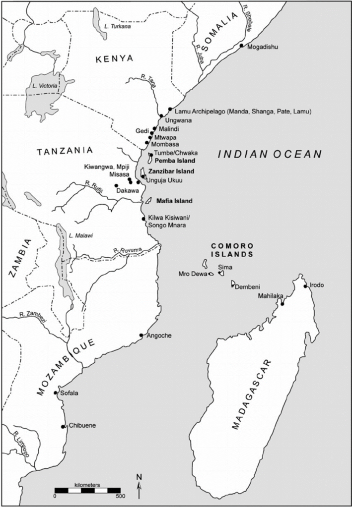 De l’essor de toute cette zone côtière, un certain nombre de villes s’illustrèrent par leur rayonnement commercial et culturel, à savoir : Mombasa, Mogadiscio, Zanzibar, Kilwa, Sofala et des îles adjacentes.